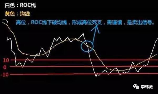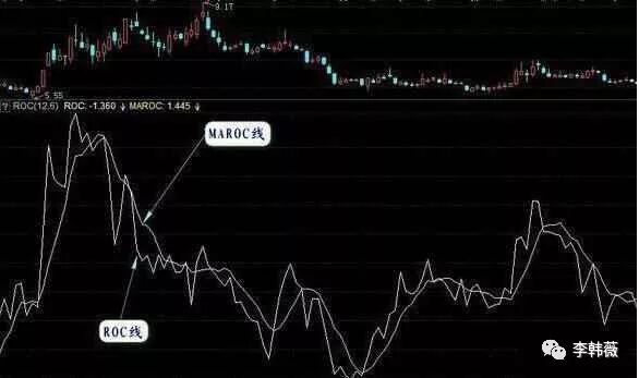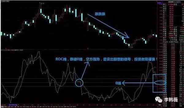 ② 当ROC向下则表示弱势,以0为中心线,由中心线上下穿小于0时为卖出信号。