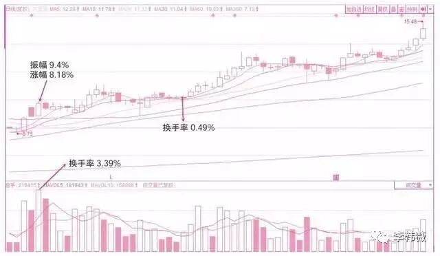 ②交易热烈,在通过向上拉抬的过程中成交量的不断放大来实现短期内的高换手率,并实现大资金的主动换防和吸引新资金介入。